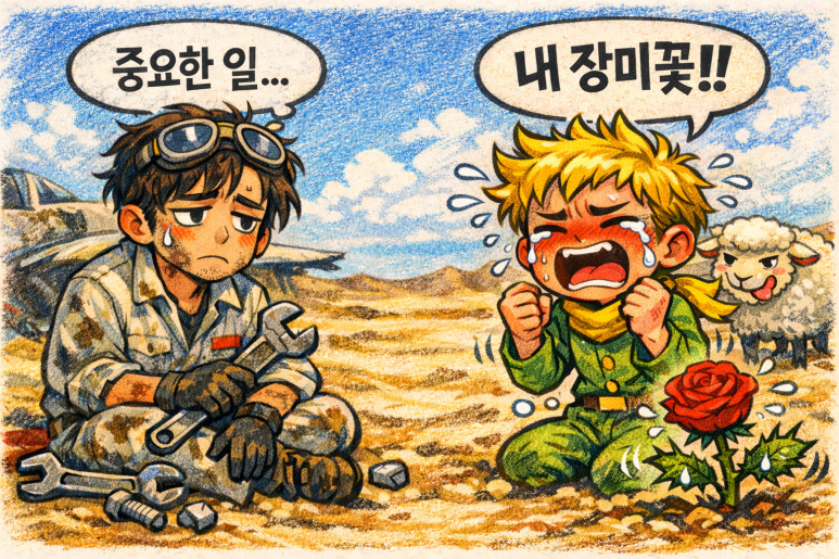 우주의 시선으로 다시 쓰는 <어린왕자>제7장: T형 조종사와 F형 왕자의 사막 대환장 파티 (feat. 가시의 쓸모)